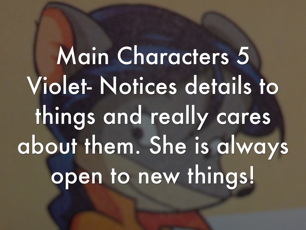 Violet- Notices details to things and really cares about them. She is always open to new things!