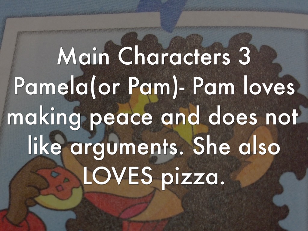 Pamela(or Pam)- Pam loves making peace and does not like arguments. She also LOVES pizza.