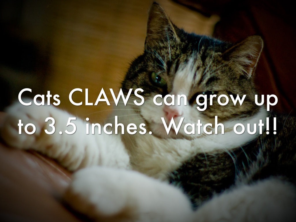 Cats CLAWS can grow up to 3.5 inches. Watch out!!