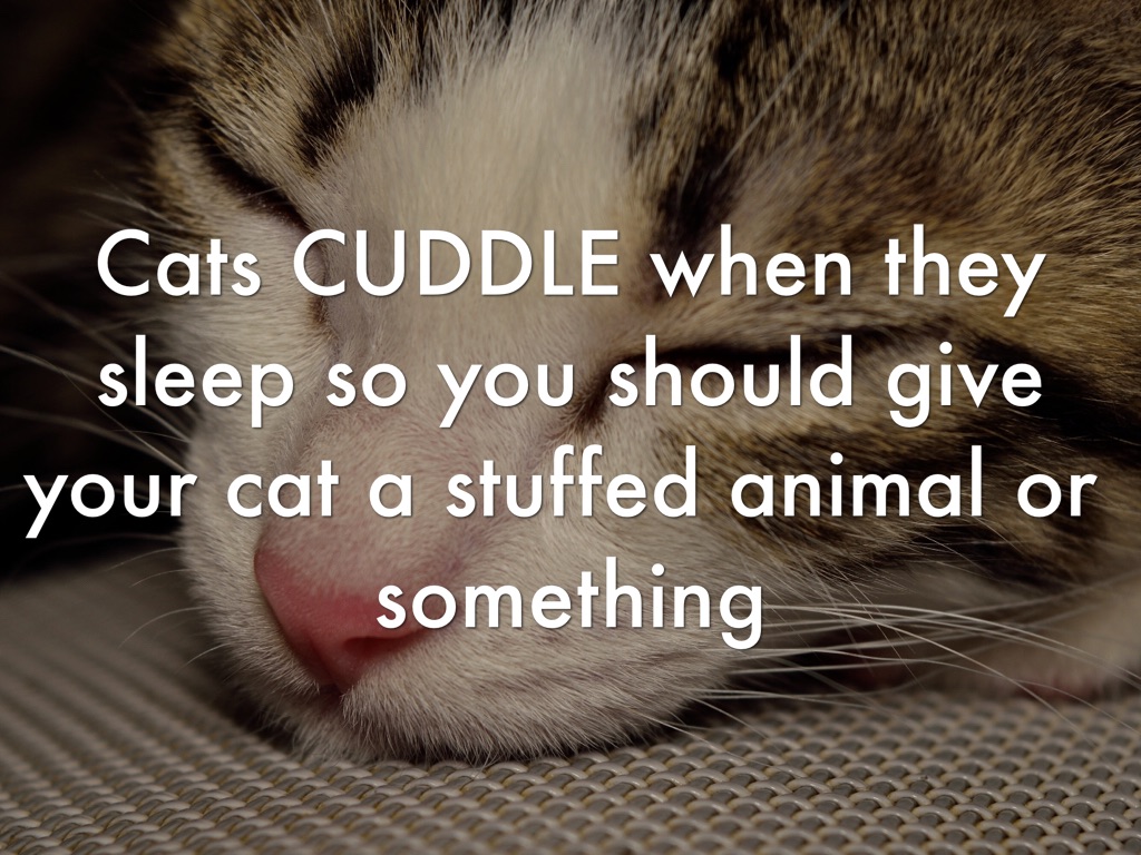 Cats CUDDLE when they sleep so you should give your cat a stuffed animal or something