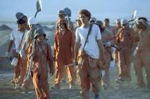 I would describe the mood three ways, mad because he is accused of something he did not do, exausted from digging holes all day, and then exciting at the end because he goes home and his family turns rich.