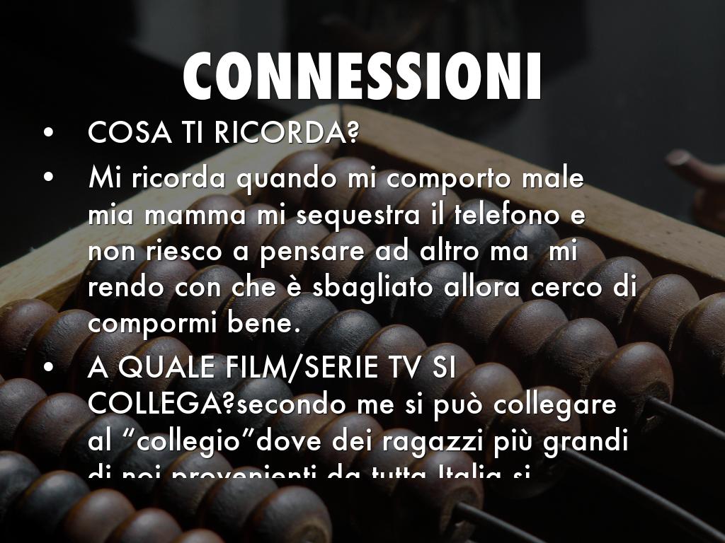 A QUALE FILM/SERIE TV SI COLLEGA?secondo me si può collegare al “collegio”dove dei ragazzi più grandi di noi provenienti da tutta Italia si trovano per un mese senza tecnologia di qualsiasi tipo.