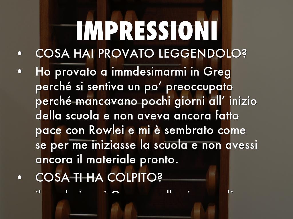 Ho provato a immdesimarmi in Greg perché si sentiva un po’ preoccupato perché mancavano pochi giorni all’ inizio della scuola e non aveva ancora fatto pace con Rowlei e mi è sembrato come se per me iniziasse la scuola e non avessi ancora il materiale pronto.