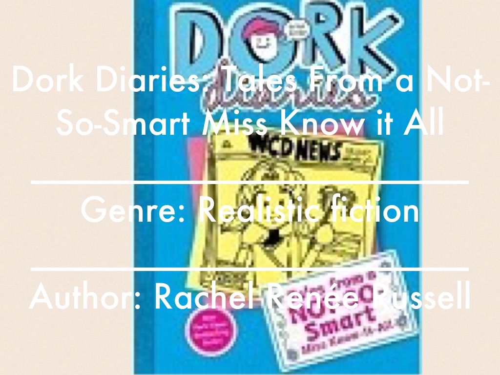 Dork Diaries: Tales From a Not-So-Smart Miss Know it All _______________________ Genre: Realistic fiction _______________________ Author: Rachel Renée Russell