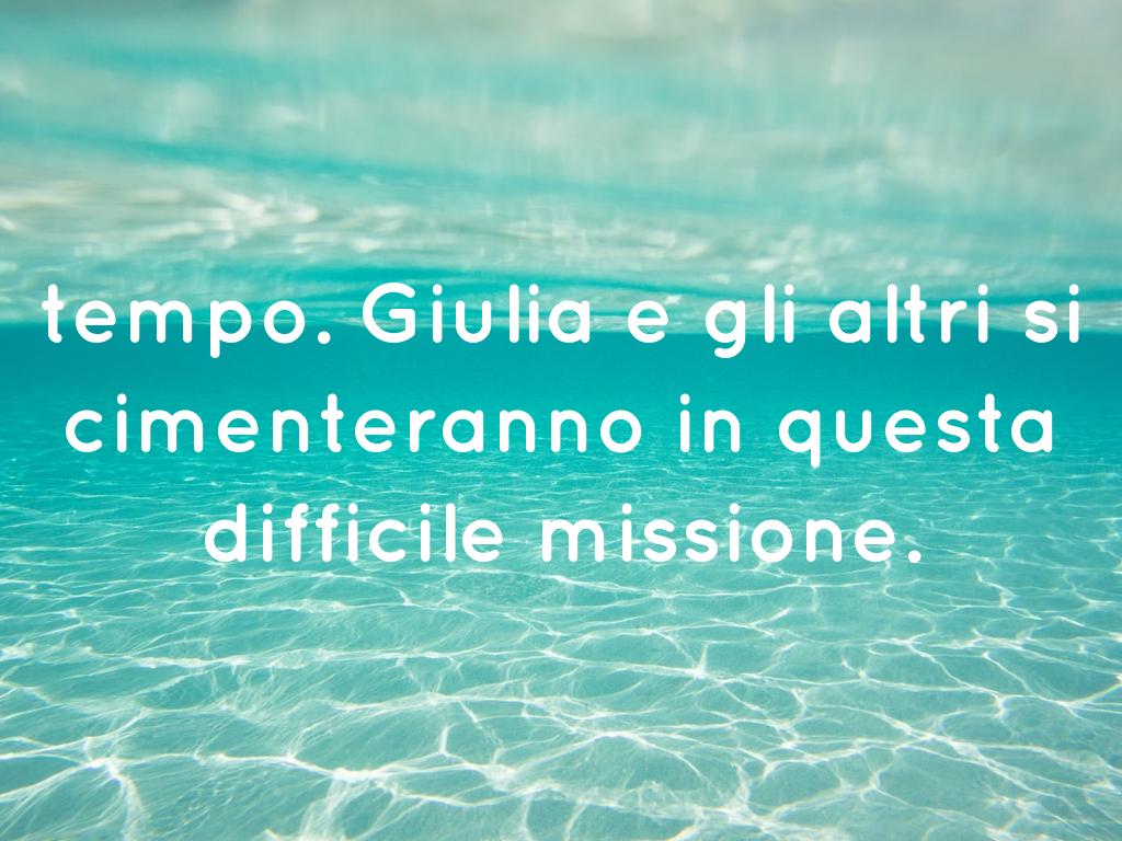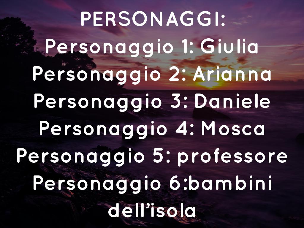 PERSONAGGI: Personaggio 1: Giulia Personaggio 2: Arianna Personaggio 3: Daniele Personaggio 4: Mosca Personaggio 5: professore Personaggio 6:bambini dell’isola