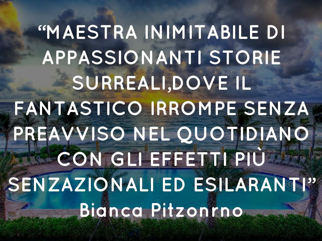 “MAESTRA INIMITABILE DI APPASSIONANTI STORIE SURREALI,DOVE IL FANTASTICO IRROMPE SENZA PREAVVISO NEL QUOTIDIANO CON GLI EFFETTI PIÙ SENZAZIONALI ED ESILARANTI” Bianca Pitzonrno