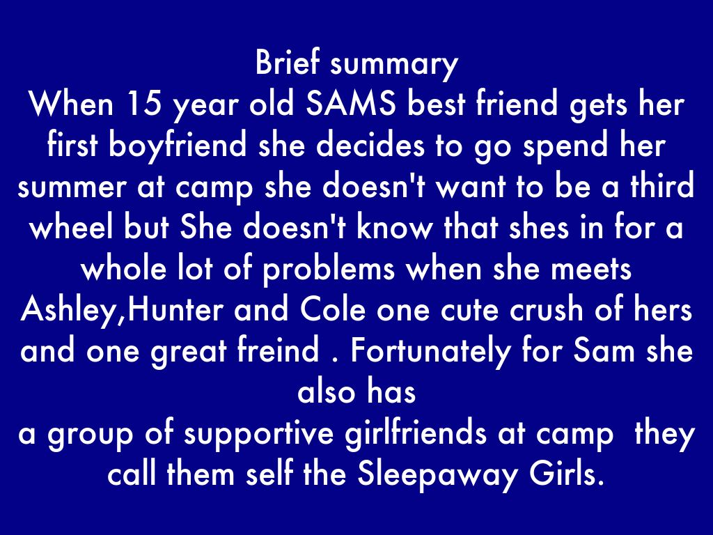 When 15 year old SAMS best friend gets her first boyfriend she decides to go spend her summer at camp she doesn't want to be a third wheel but She doesn't know that shes in for a whole lot of problems when she meets Ashley,Hunter and Cole one cute crush of hers and one great freind . Fortunately for Sam she also has