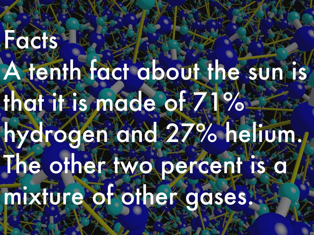 Facts A seventh fact about the sun is that it is magnetic because the swirling gases deep inside the sun create very energetic and powerful magnetic fields.