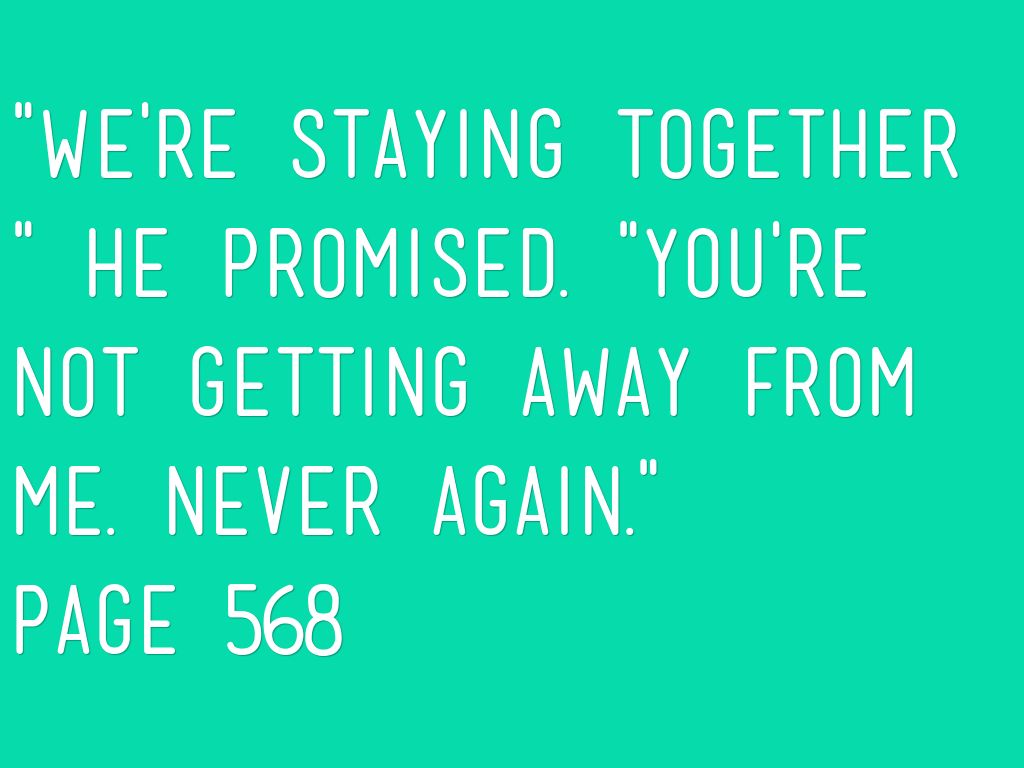 "We're staying together " he promised. "You're not getting away from me. Never again."