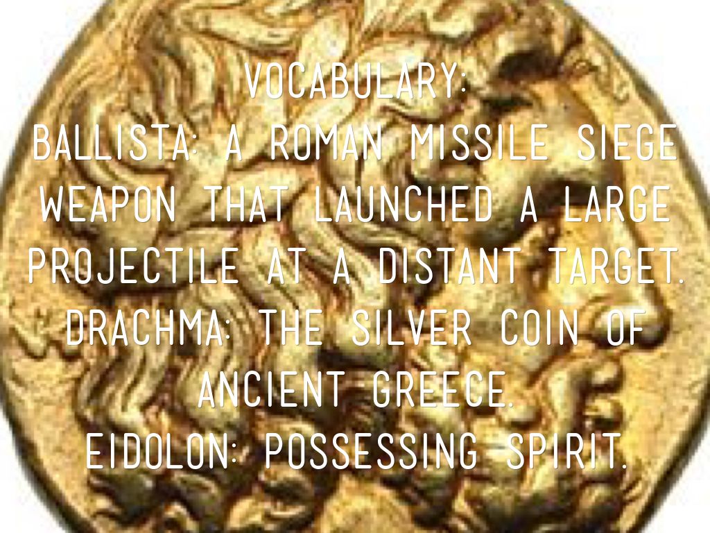 Ballista: A Roman missile siege weapon that launched a large projectile at a distant target.