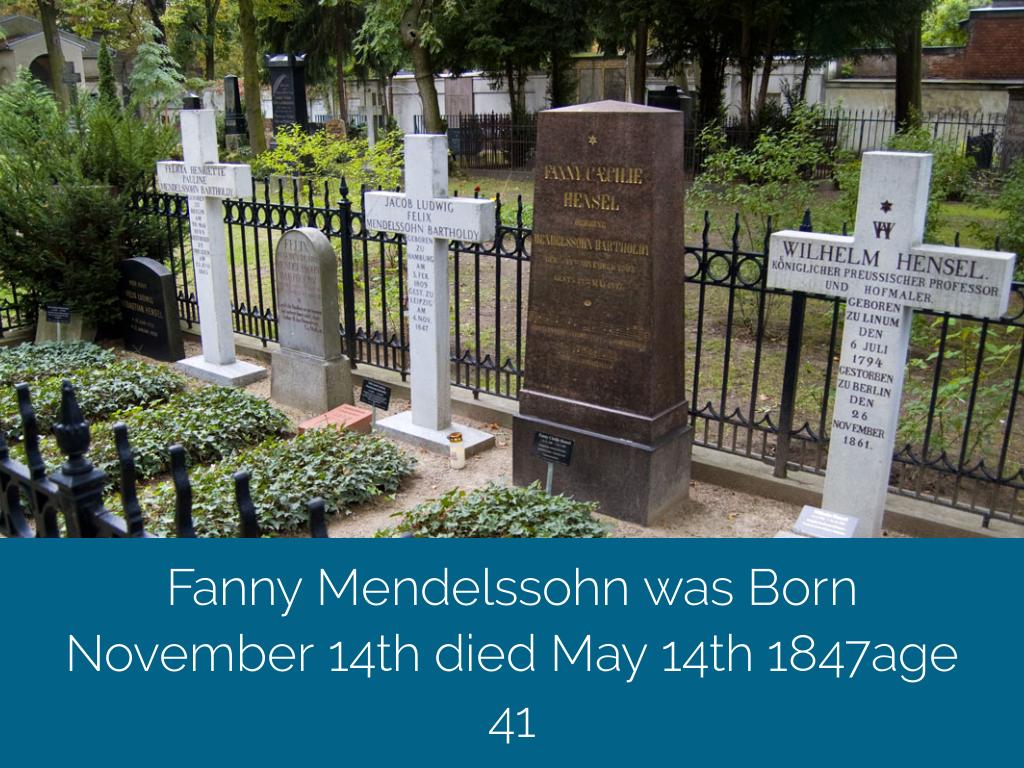 Fanny Mendelssohn was Born November 14th died May 14th 1847age 41