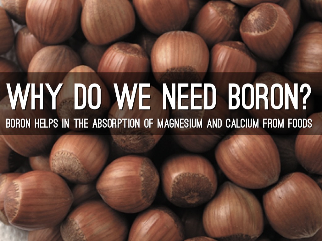 BORON HELPS IN THE ABSORPTION OF MAGNESIUM AND CALCIUM FROM FOODS
