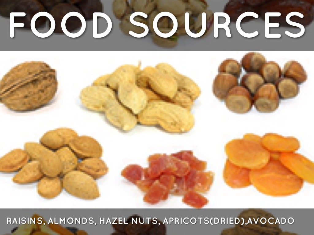 RAISINS, ALMONDS, HAZEL NUTS, APRICOTS(DRIED),AVOCADO