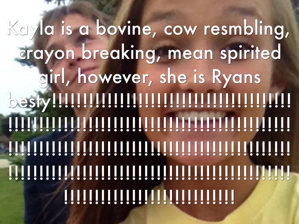 Kayla is a bovine, cow resmbling, crayon breaking, mean spirited girl, however, she is Ryans besty!!!!!!!!!!!!!!!!!!!!!!!!!!!!!!!!!!!!!!!!!!!!!!!!!!!!!!!!!!!!!!!!!!!!!!!!!!!!!!!!!!!!!!!!!!!!!!!!!!!!!!!!!!!!!!!!!!!!!!!!!!!!!!!!!!!!!!!!!!!!!!!!!!!!!!!!!!!!!!!!!!!!!!!!!!!!!!!!!!!!!!!!!!!!!!!!!!!!!!!!!!!!!