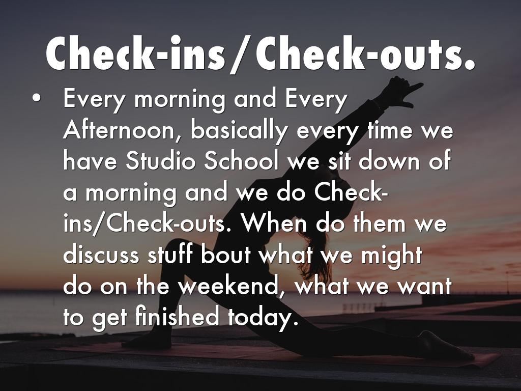 Every morning and Every Afternoon, basically every time we have Studio School we sit down of a morning and we do Check-ins/Check-outs. When do them we discuss stuff bout what we might do on the weekend, what we want to get finished today.