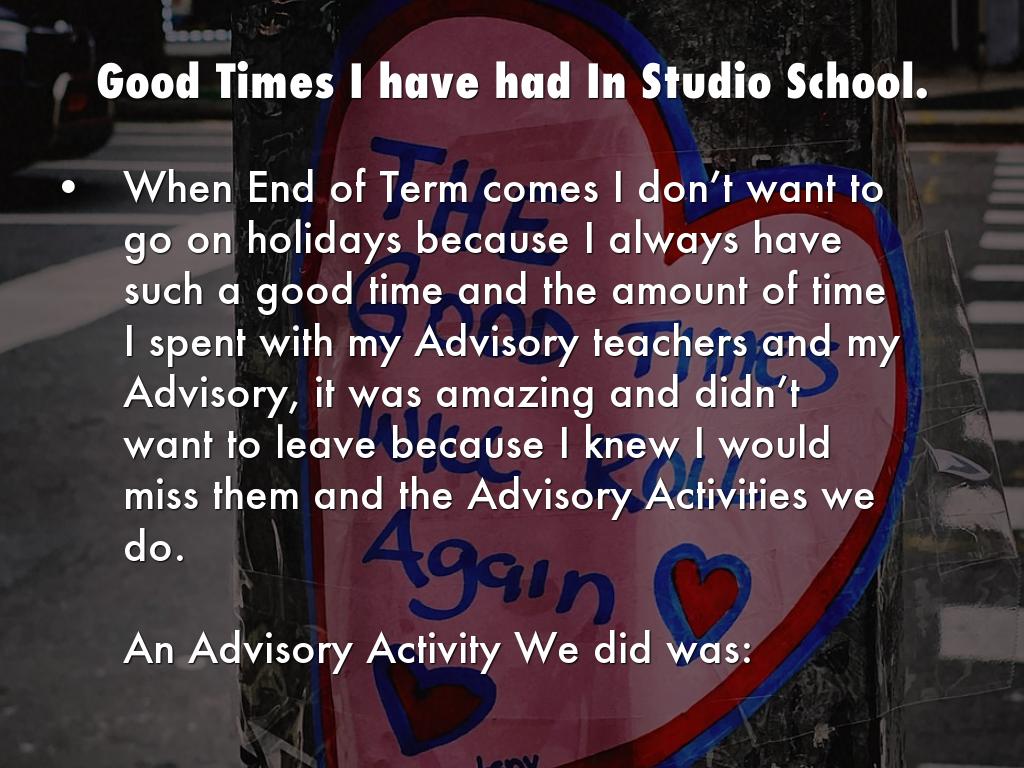 When End of Term comes I don’t want to go on holidays because I always have such a good time and the amount of time I spent with my Advisory teachers and my Advisory, it was amazing and didn’t want to leave because I knew I would miss them and the Advisory Activities we do.