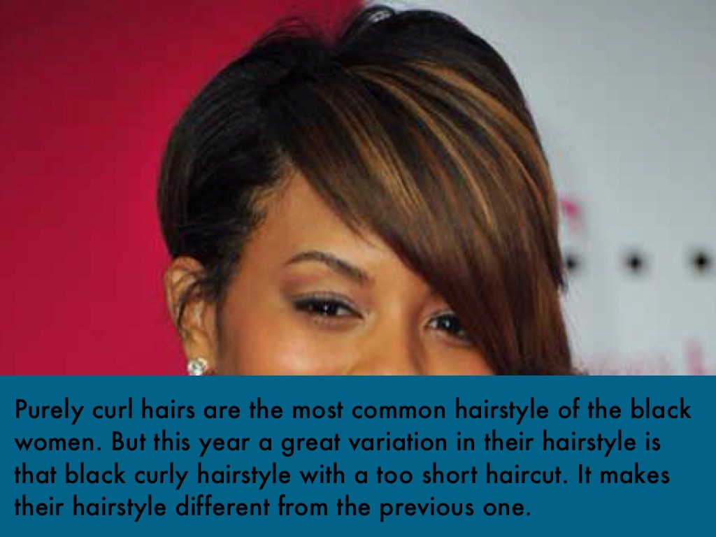 Purely curl hairs are the most common hairstyle of the black women. But this year a great variation in their hairstyle is that black curly hairstyle with a too short haircut. It makes their hairstyle different from the previous one.
