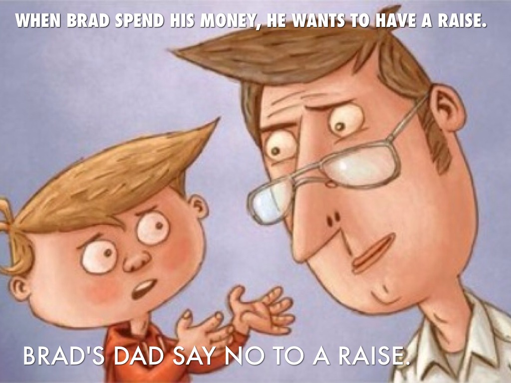 WHEN BRAD SPEND HIS MONEY, HE WANTS TO HAVE A RAISE.
