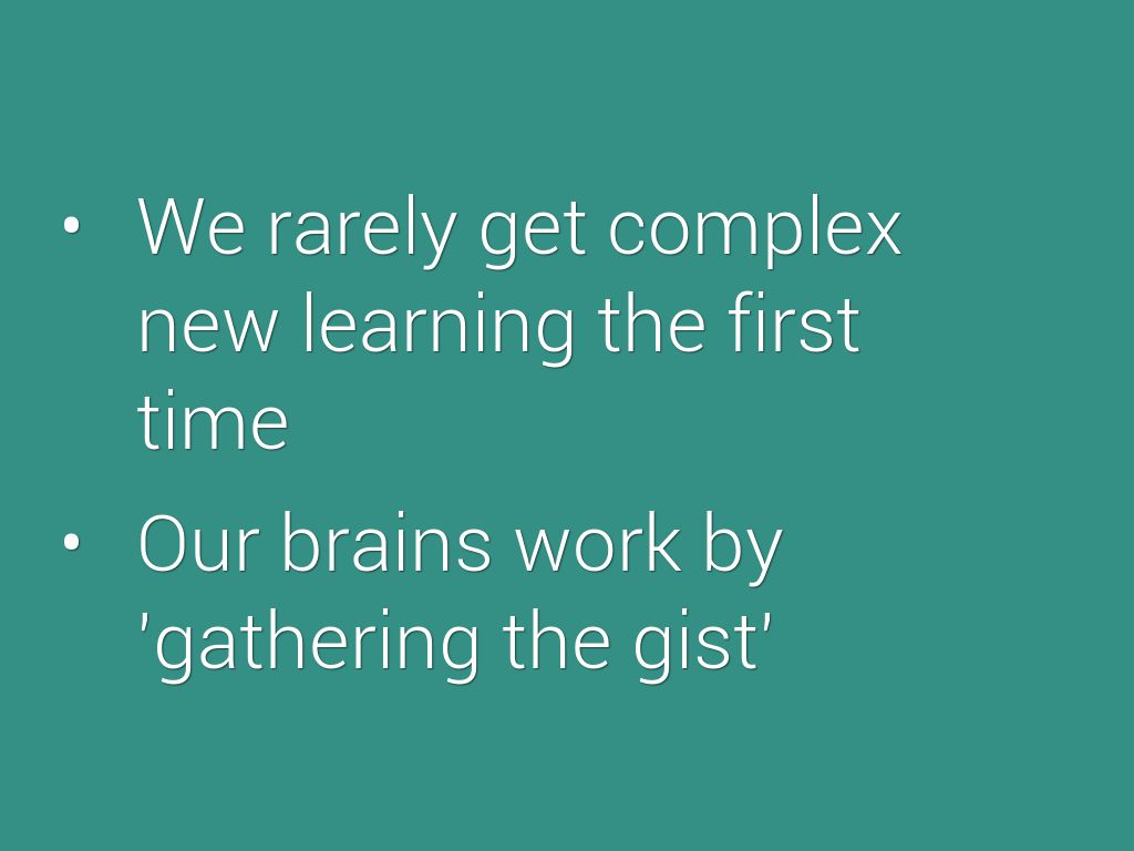 We rarely get complex new learning the first time