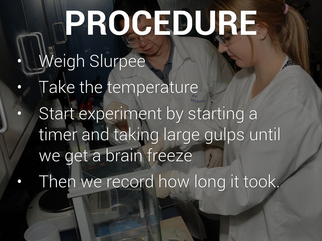 • Start experiment by starting a timer and taking large gulps until we get a brain freeze