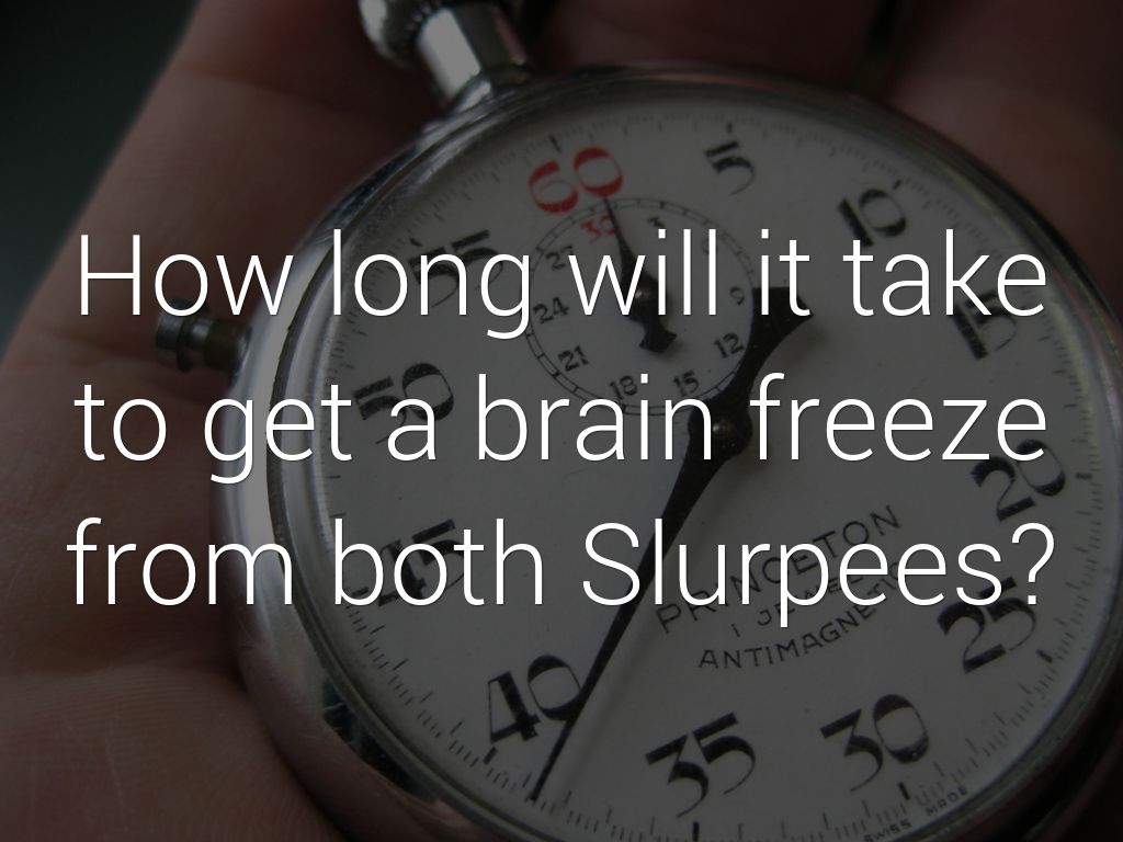 • The Slurpees from 711 took us about 12.5 seconds to feel a brain freeze