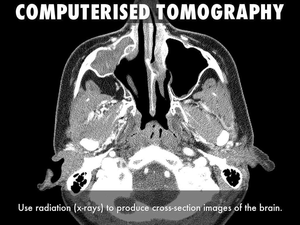 Use radiation (x-rays) to produce cross-section images of the brain.