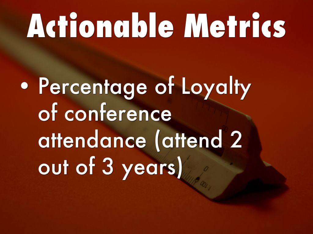 • Percentage of Loyalty of conference attendance (attend 2 out of 3 years)