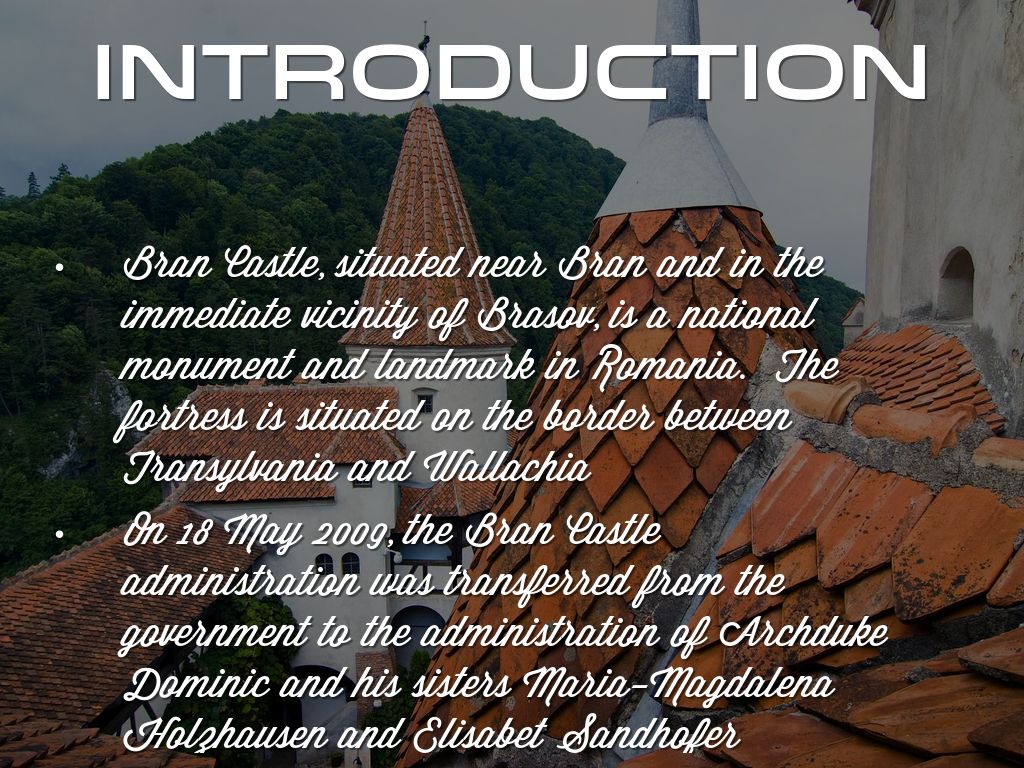 On 18 May 2009, the Bran Castle administration was transferred from the government to the administration of Archduke Dominic and his sisters Maria-Magdalena Holzhausen and Elisabet Sandhofer