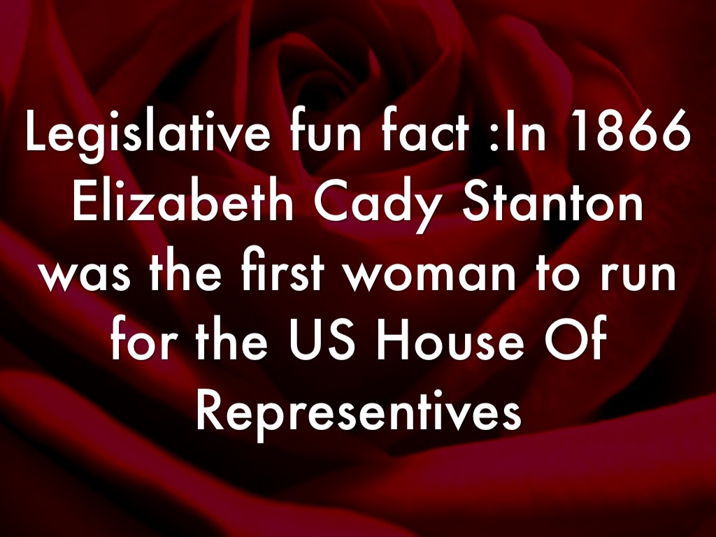 Legislative fun fact :In 1866 Elizabeth Cady Stanton was the first woman to run for the US House Of Representives