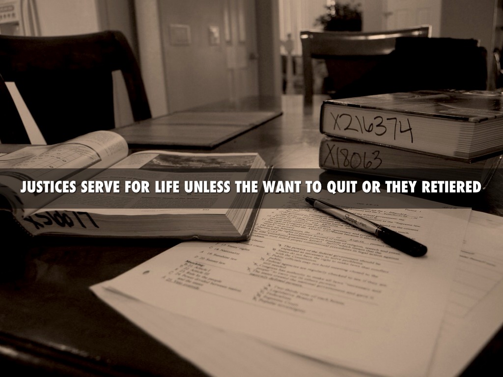 JUSTICES SERVE FOR LIFE UNLESS THE WANT TO QUIT OR THEY RETIERED