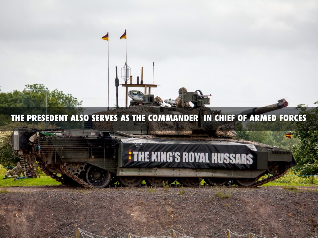 THE PRESEDENT ALSO SERVES AS THE COMMANDER IN CHIEF OF ARMED FORCES
