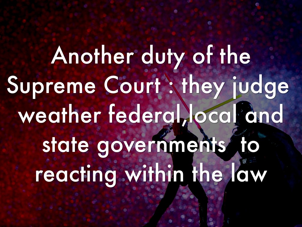 Another duty of the Supreme Court : they judge weather federal,local and state governments to reacting within the law