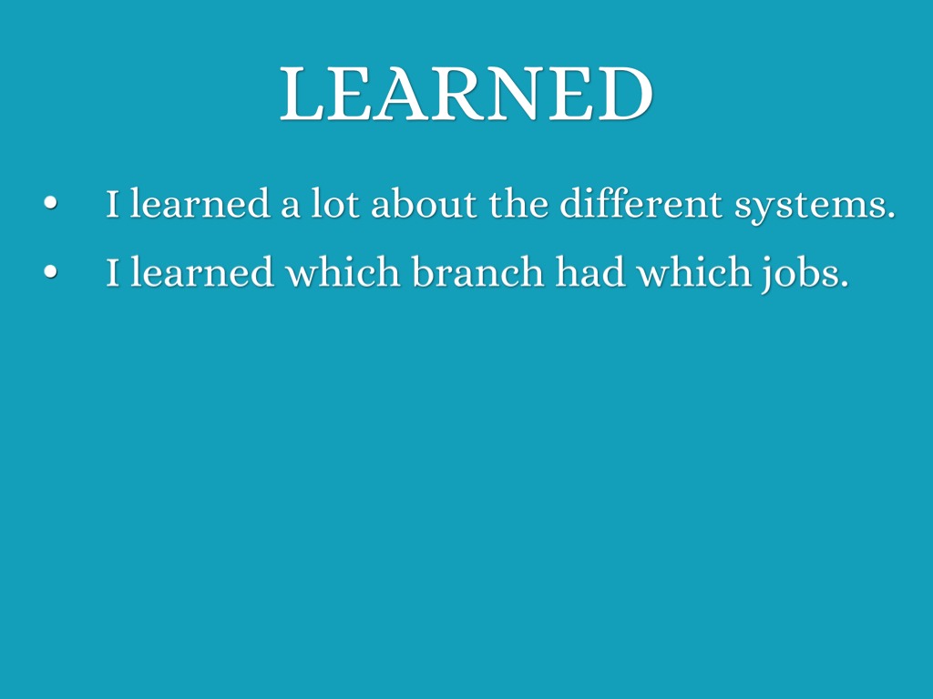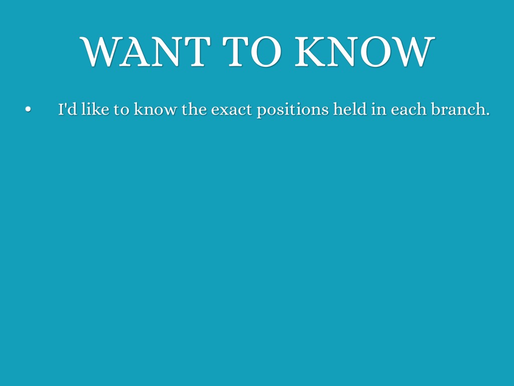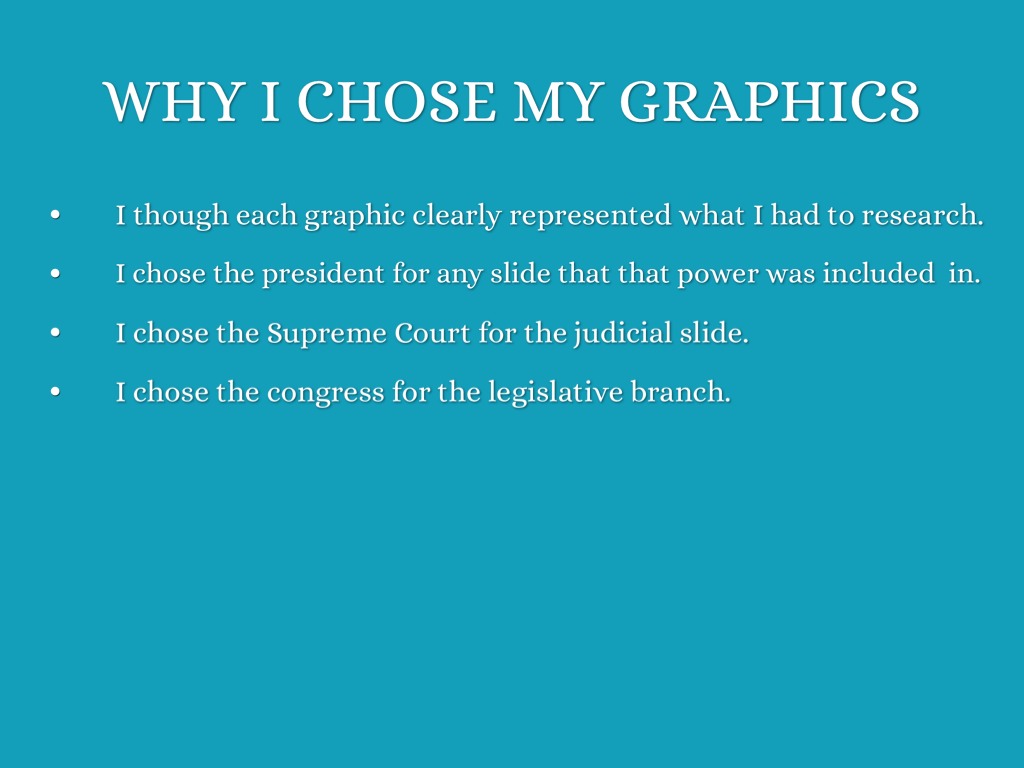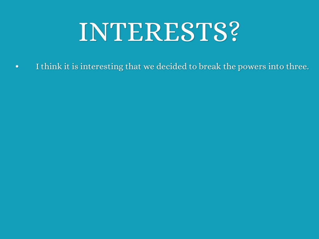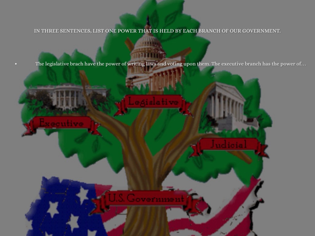 IN THREE SENTENCES, LIST ONE POWER THAT IS HELD BY EACH BRANCH OF OUR GOVERNMENT.