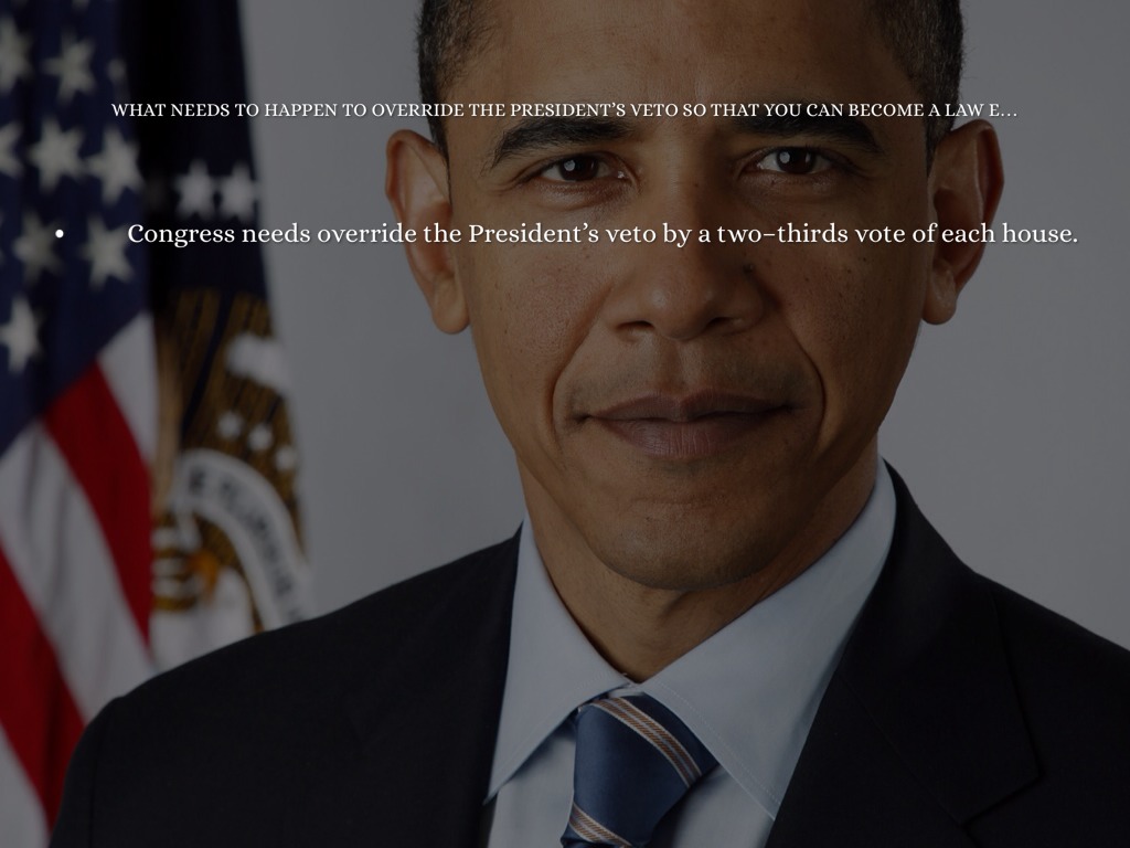 What needs to happen to override the President’s veto so that you can become a law even if you are vetoed?