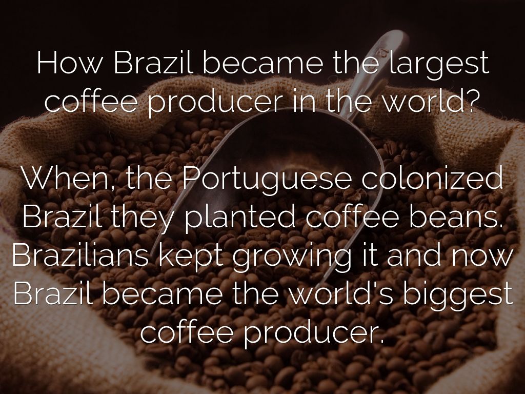 When, the Portuguese colonized Brazil they planted coffee beans. Brazilians kept growing it and now Brazil became the world's biggest coffee producer.