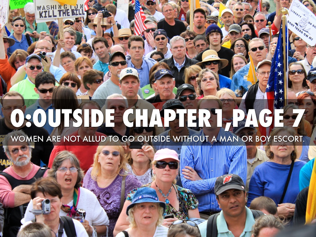 WOMEN ARE NOT ALLUD TO GO OUTSIDE WITHOUT A MAN OR BOY ESCORT.