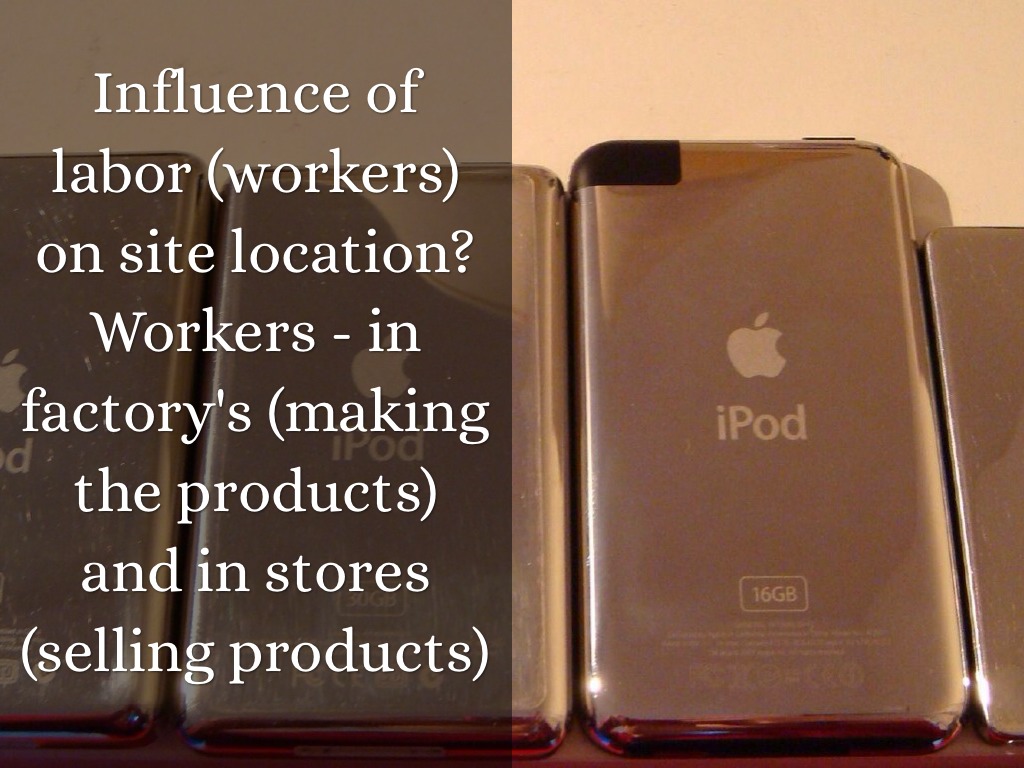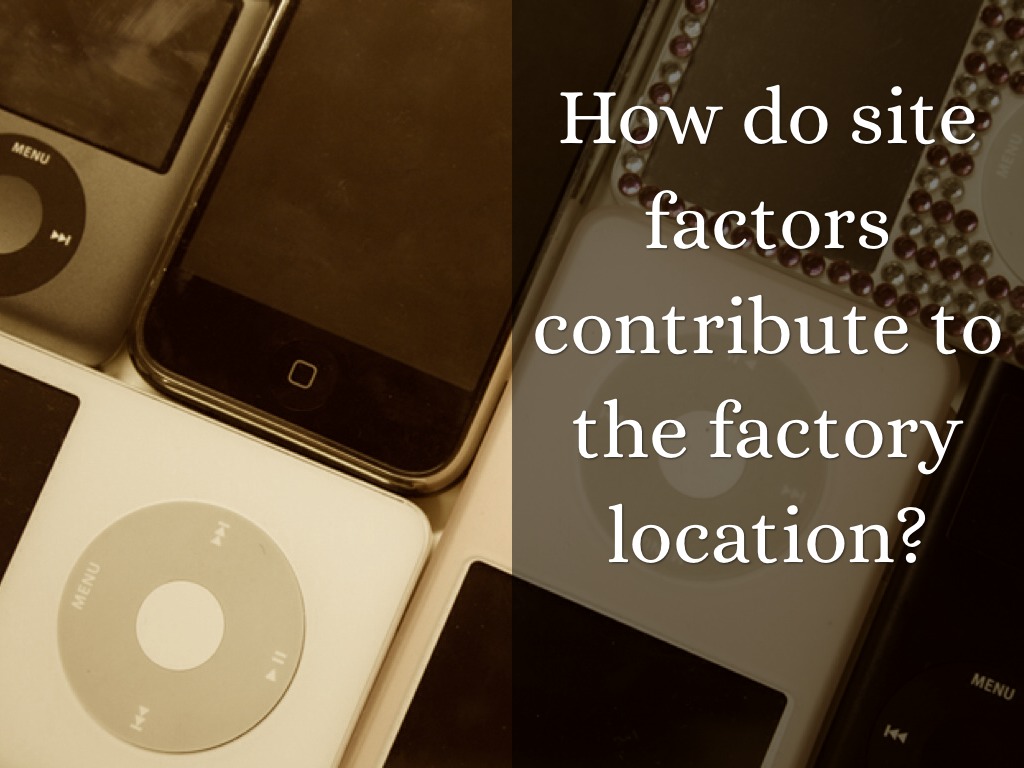 ~ Site Factors: are industrial location factors of production inside the plant, labors, land, and capital.