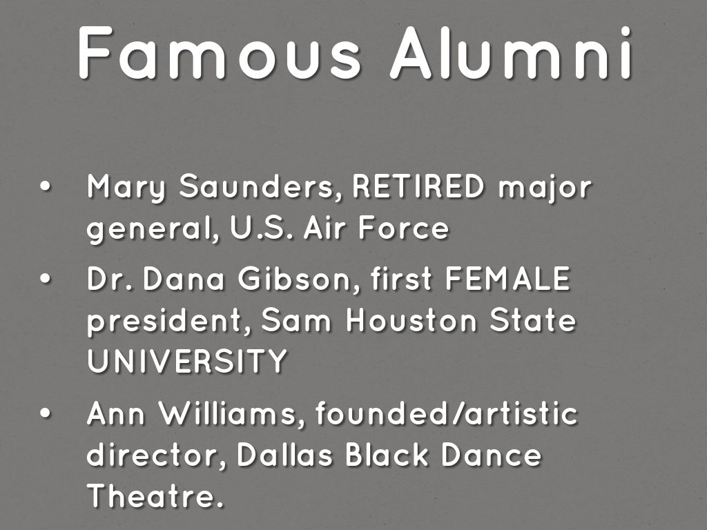 • Dr. Dana Gibson, first FEMALE president, Sam Houston State UNIVERSITY
