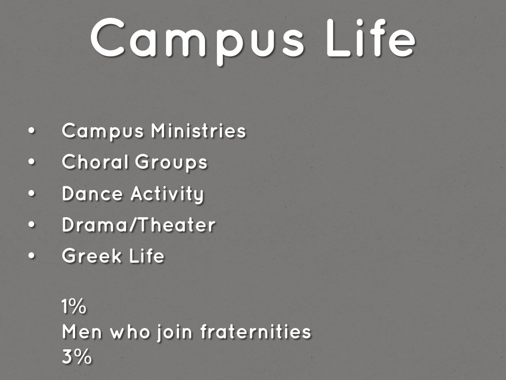 • Greek Life 1% Men who join fraternities 3% Women who join sororities