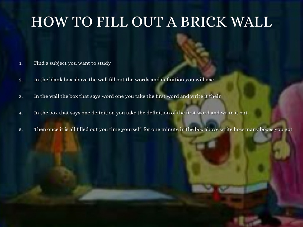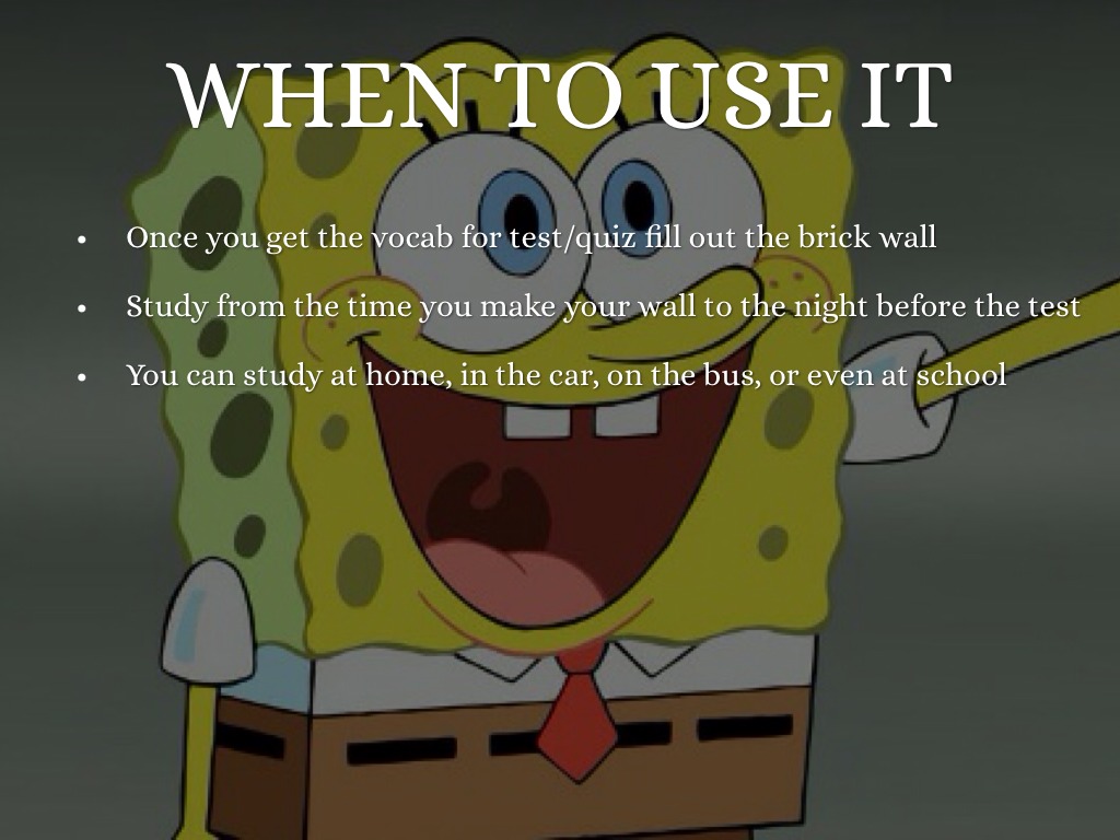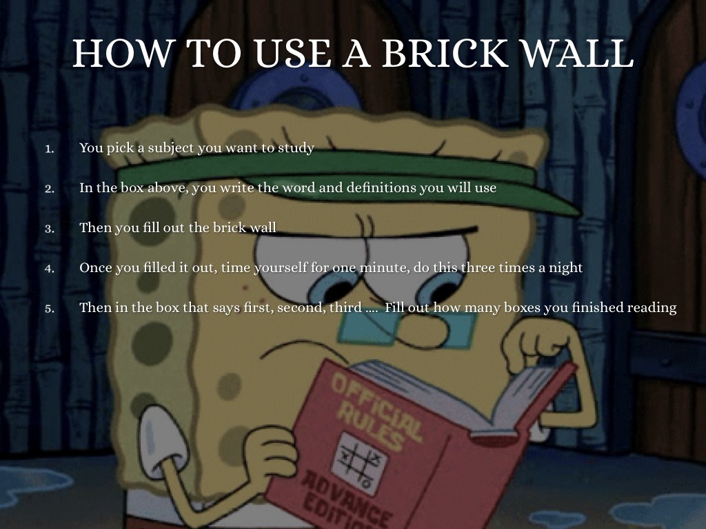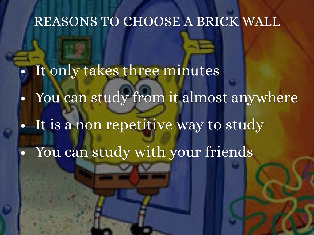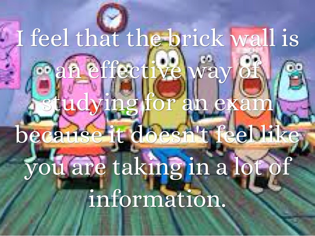 I feel that the brick wall is an effective way of studying for an exam because it doesn't feel like you are taking in a lot of information.