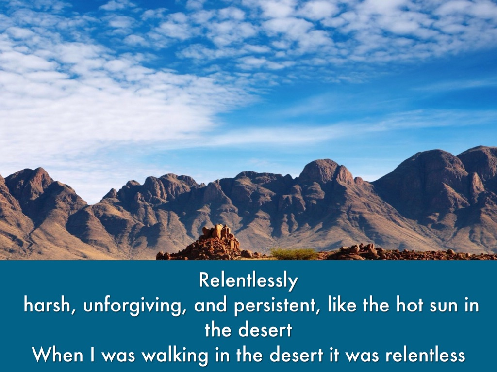 harsh, unforgiving, and persistent, like the hot sun in the desert