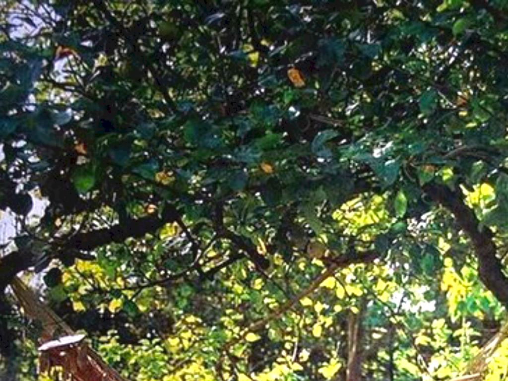 Wooded park, trees, grass , dusk, with printed fabrics and candles