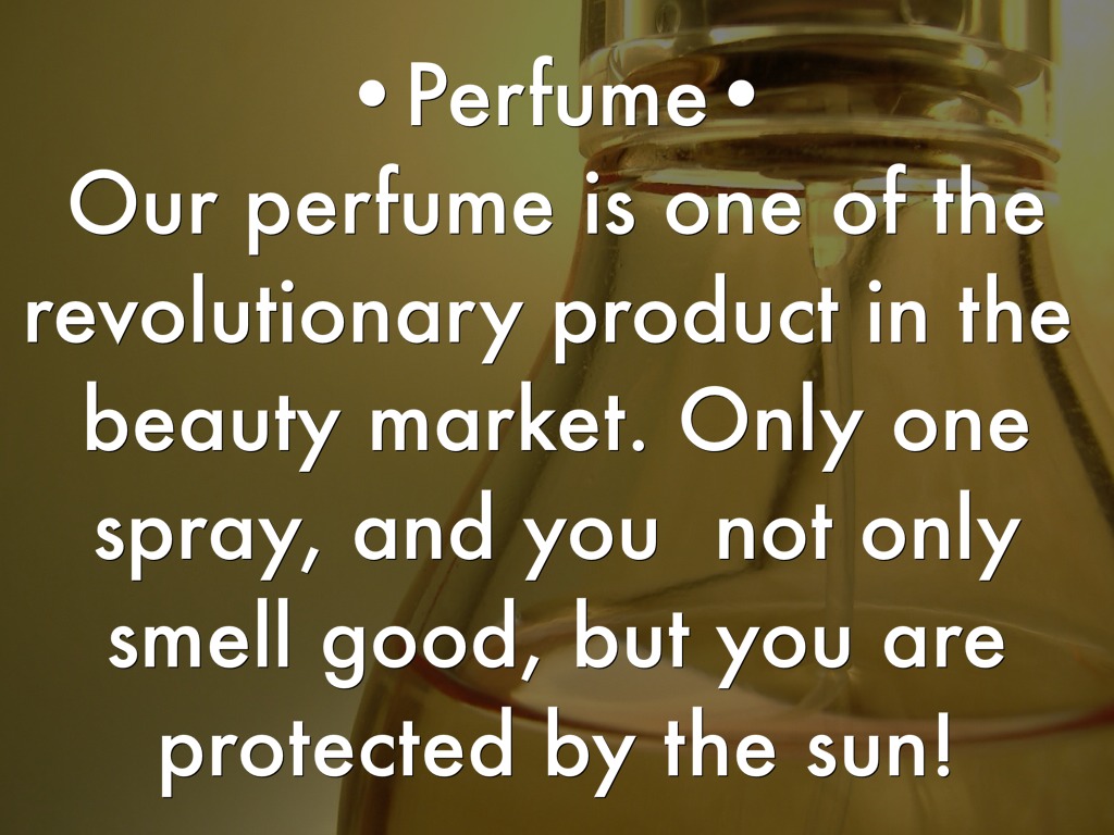 Our perfume is one of the revolutionary product in the beauty market. Only one spray, and you not only smell good, but you are protected by the sun!