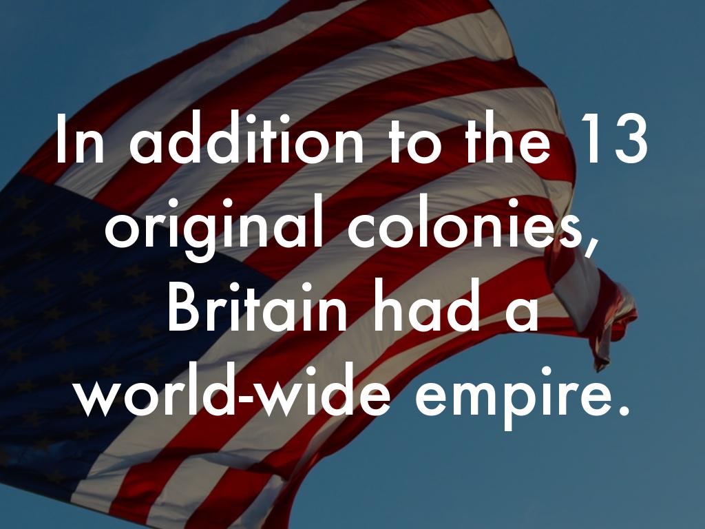 In addition to the 13 original colonies, Britain had a world-wide empire.