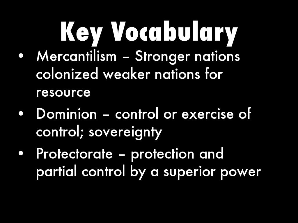 Mercantilism – Stronger nations colonized weaker nations for resource