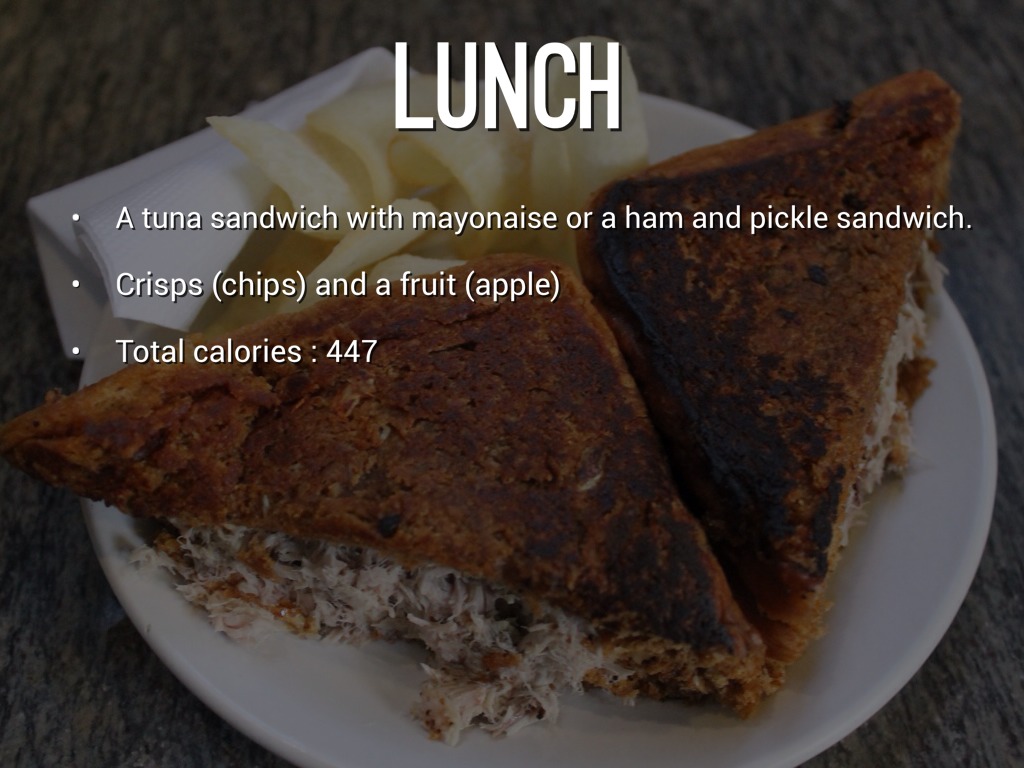 A tuna sandwich with mayonaise or a ham and pickle sandwich.