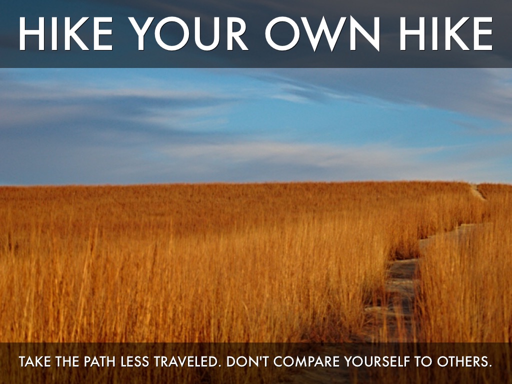 TAKE THE PATH LESS TRAVELED. DON'T COMPARE YOURSELF TO OTHERS.