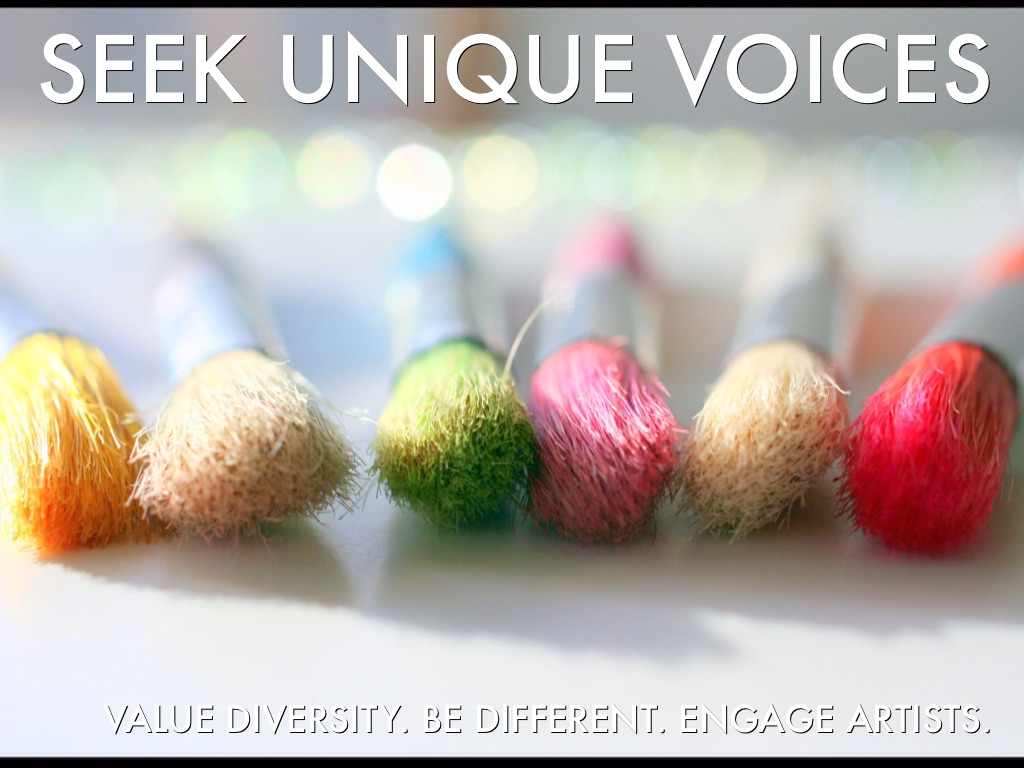 VALUE DIVERSITY. BE DIFFERENT. ENGAGE ARTISTS.