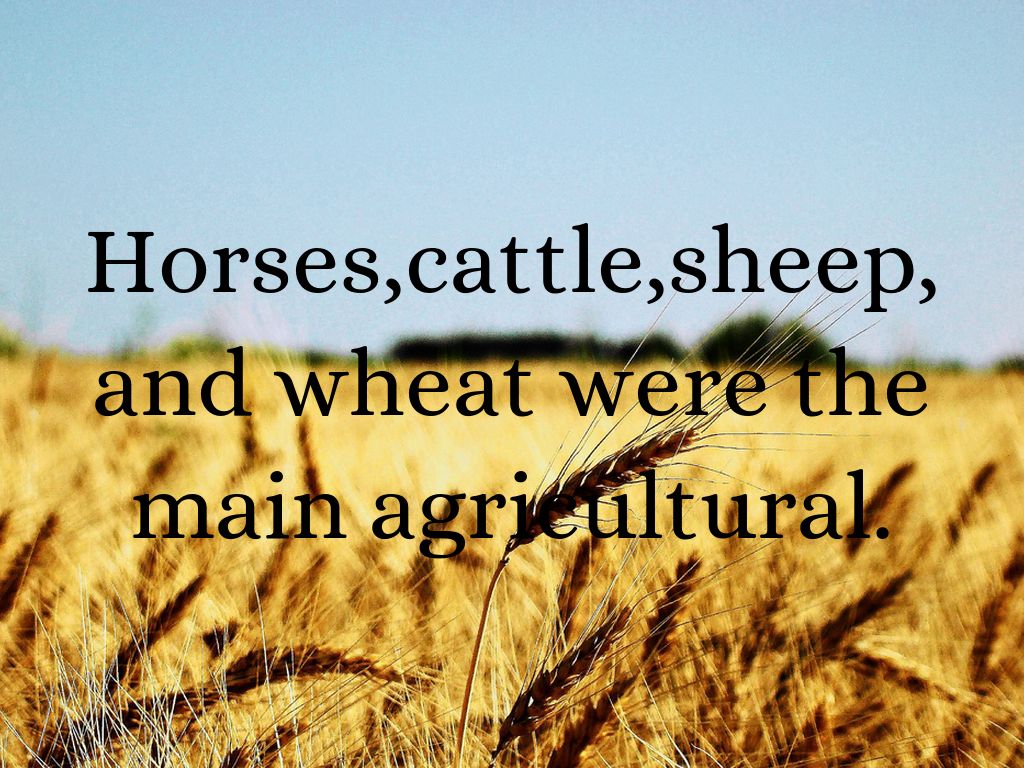 Horses,cattle,sheep, and wheat were the main agricultural.