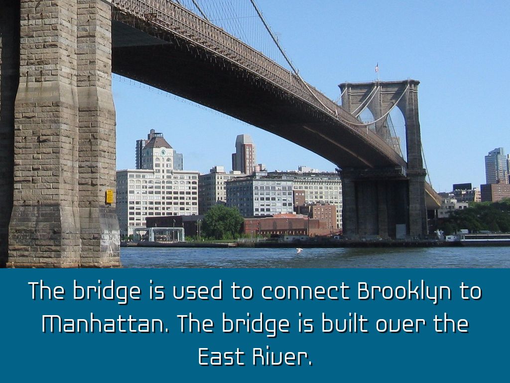 The bridge is used to connect Brooklyn to Manhattan. The bridge is built over the East River.